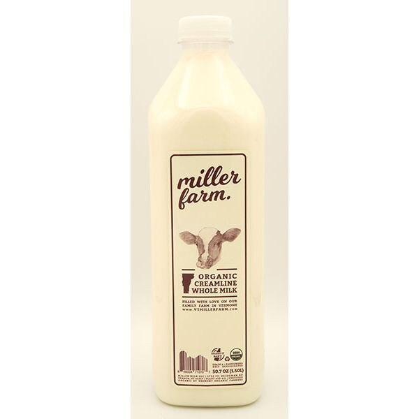 Miller Farm / Creamline Whole Milk, OG / Case, 12 x 1.5L bottles SKU: MIL008 BRAND: Miller FarmSTATE OF ORIGIN: VermontSHIPPING TEMP: RefrigeratedTARGET MARKET: RetailATTRIBUTES: Certified OrganicPROGRAM ELIGIBILITY: Local Food For Schools, Vermont Local Foods Incentive Please log in to see price or purchase this item Quantity discounts available QuantityPrice Available: 583 Attributes Certified Organic Attributes Back AttributesCertified Organic