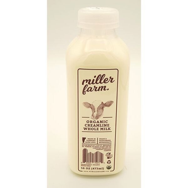 Miller Farm / Creamline Whole Milk, OG / Case, 12 pints SKU: MIL010 BRAND: Miller FarmSTATE OF ORIGIN: VermontSHIPPING TEMP: RefrigeratedTARGET MARKET: RetailATTRIBUTES: Certified OrganicPROGRAM ELIGIBILITY: Local Food For Schools Please log in to see price or purchase this item Quantity discounts available QuantityPrice Available: 574 Attributes Certified Organic Attributes Back AttributesCertified Organic